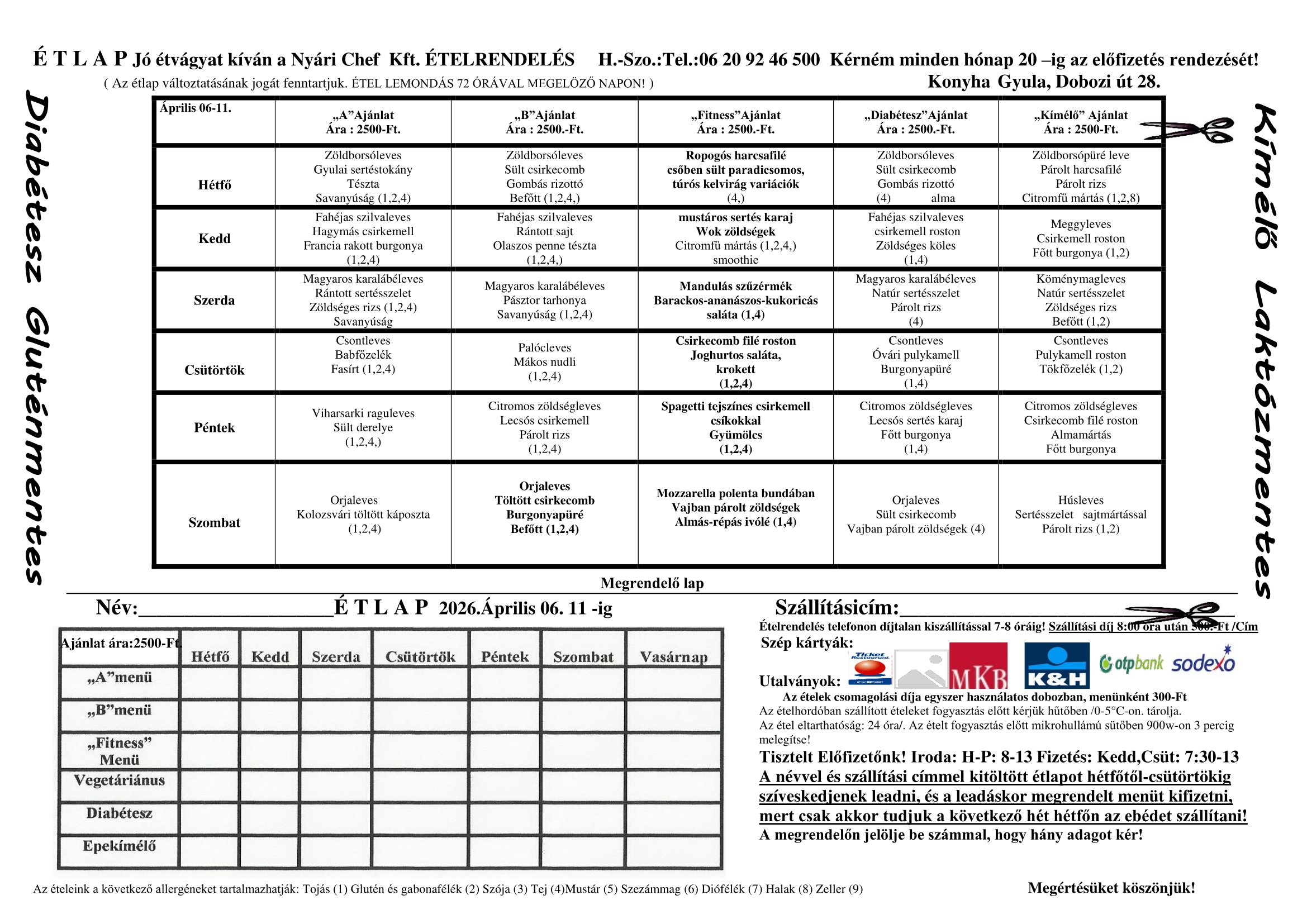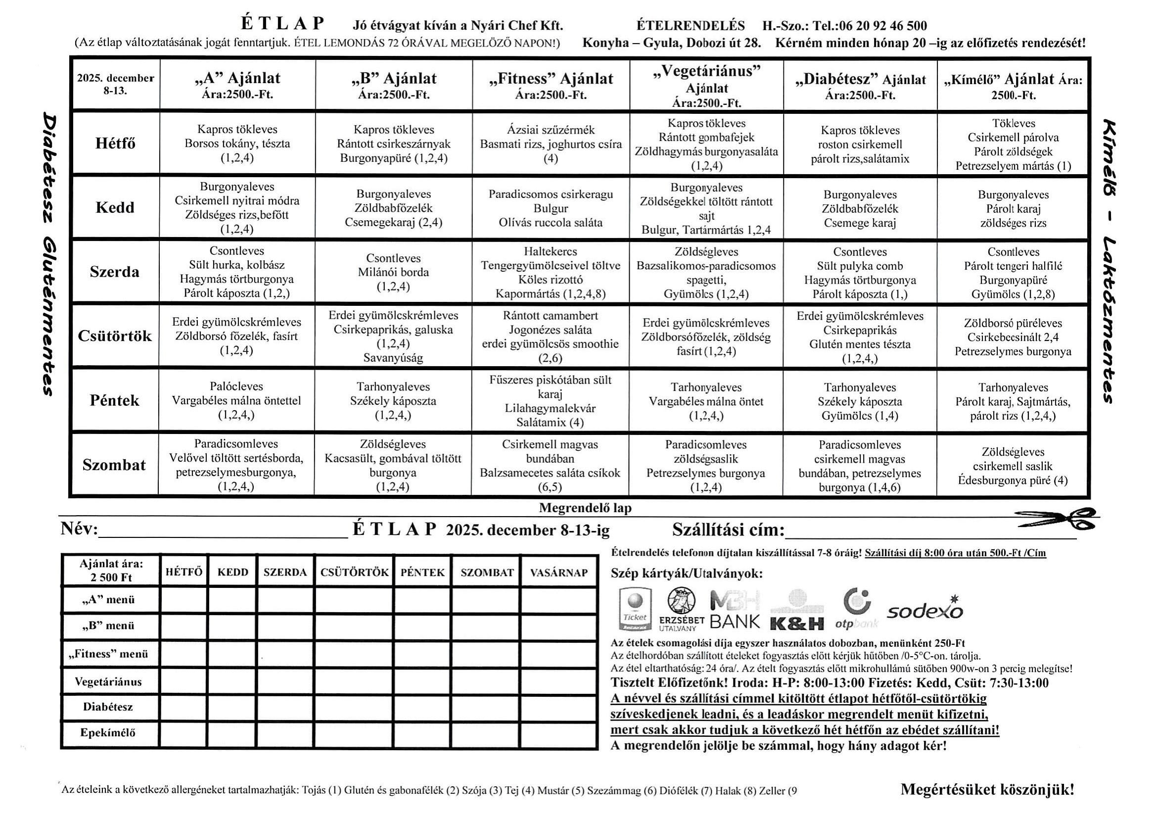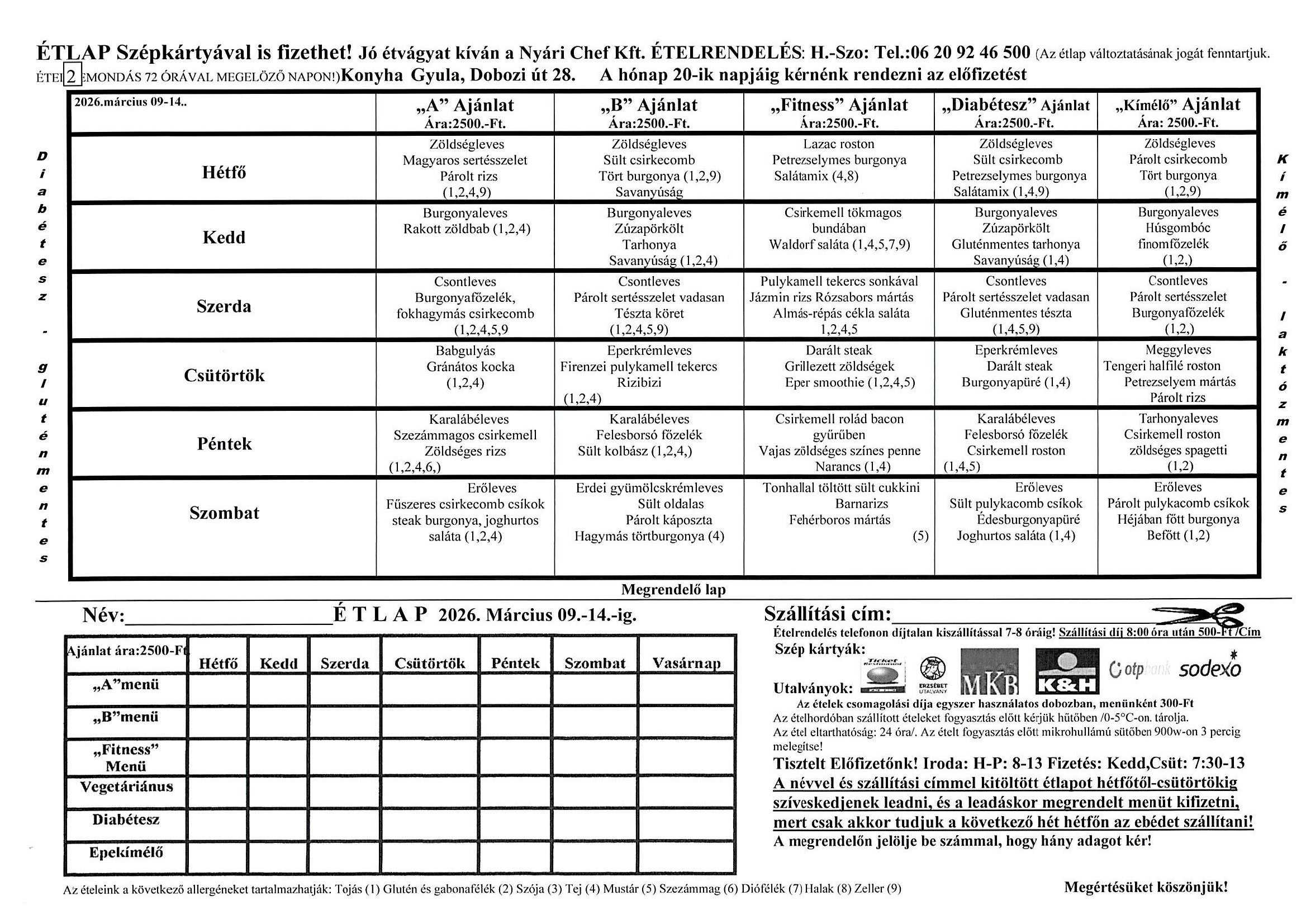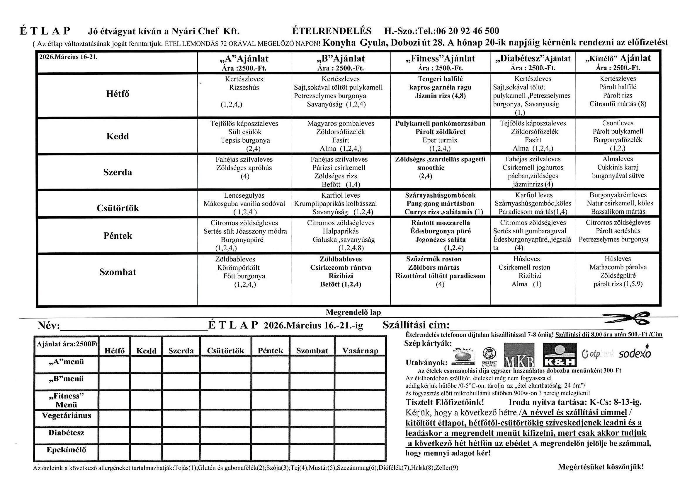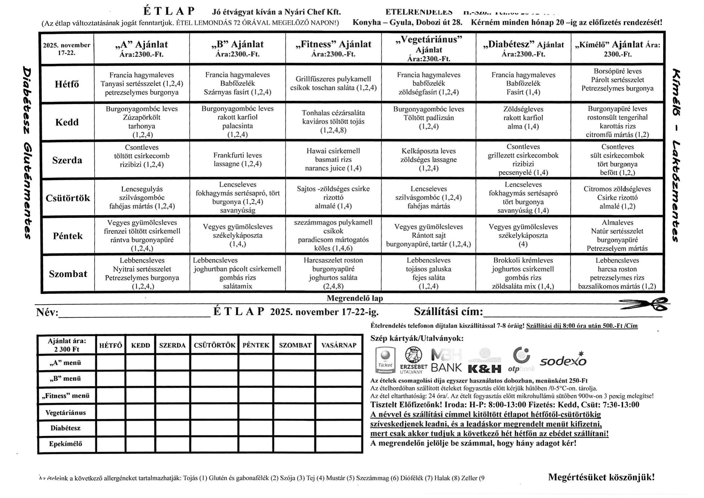 Adja le rendelését legkésőbb reggel 8.00-ig, és Békéscsabára is kiszállítjuk a választott menüjét. A kiszállítás díját a menü ára tartalmazza!