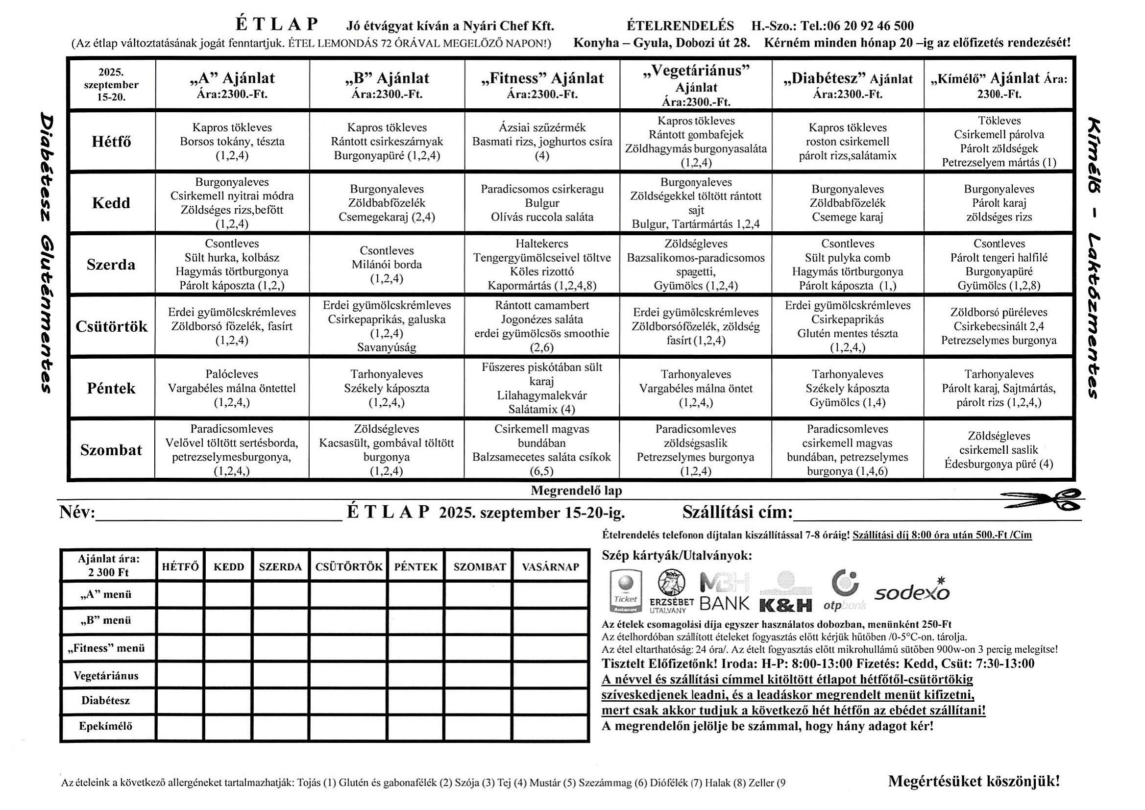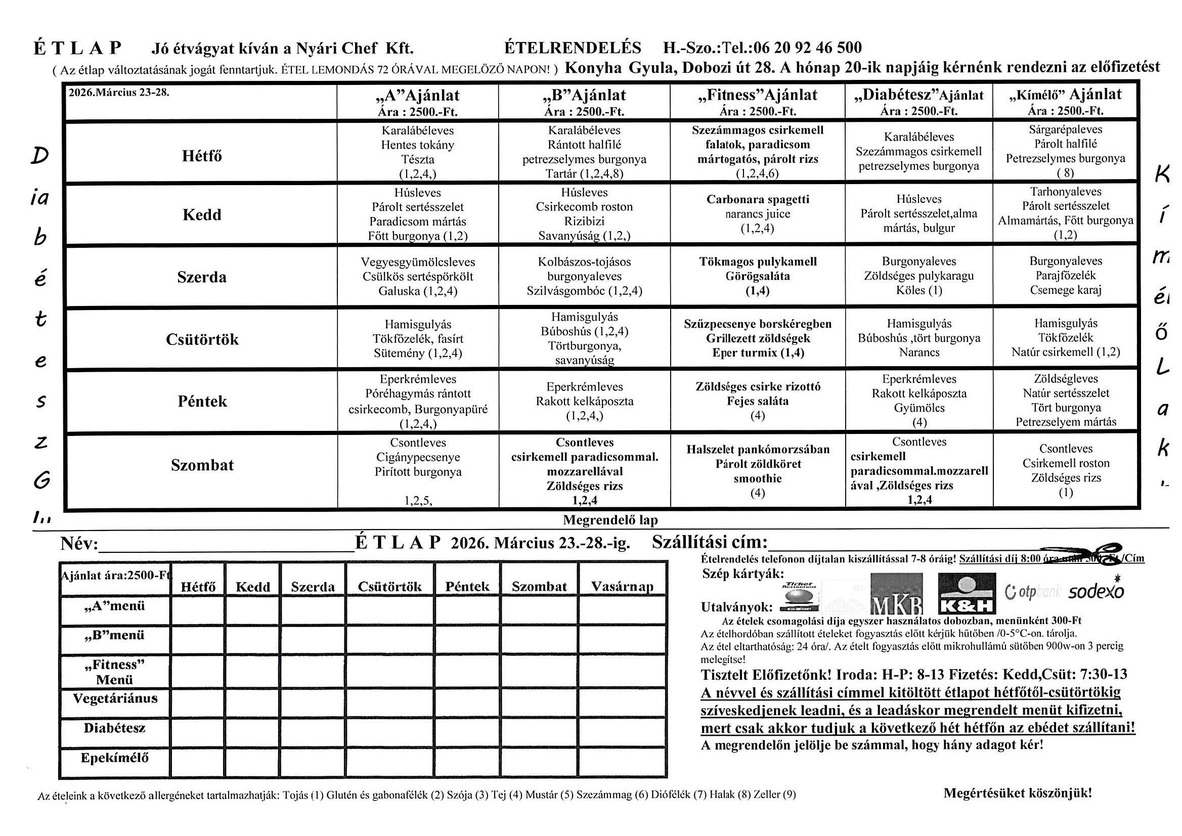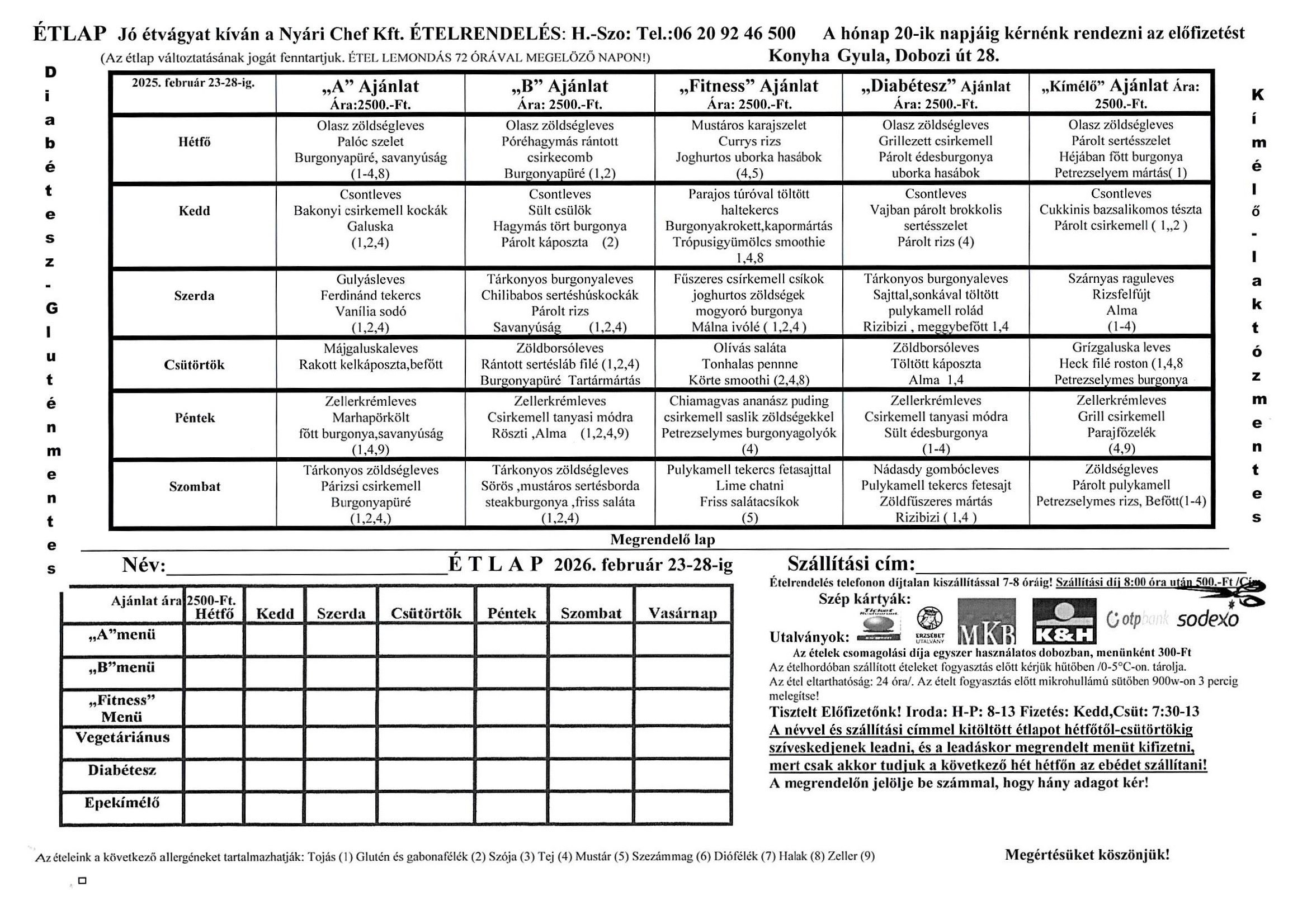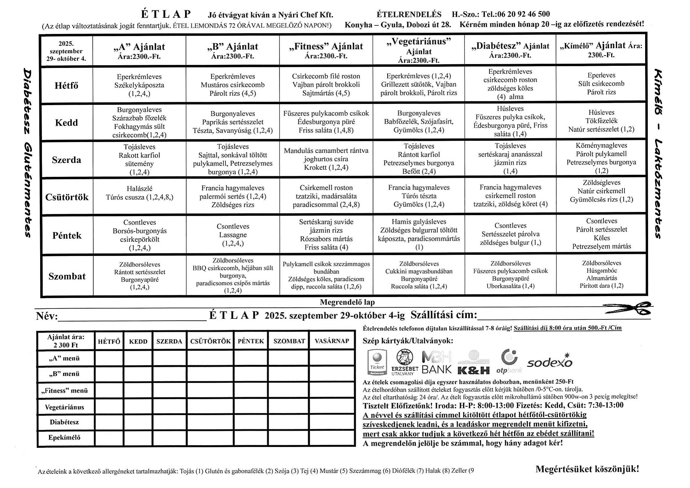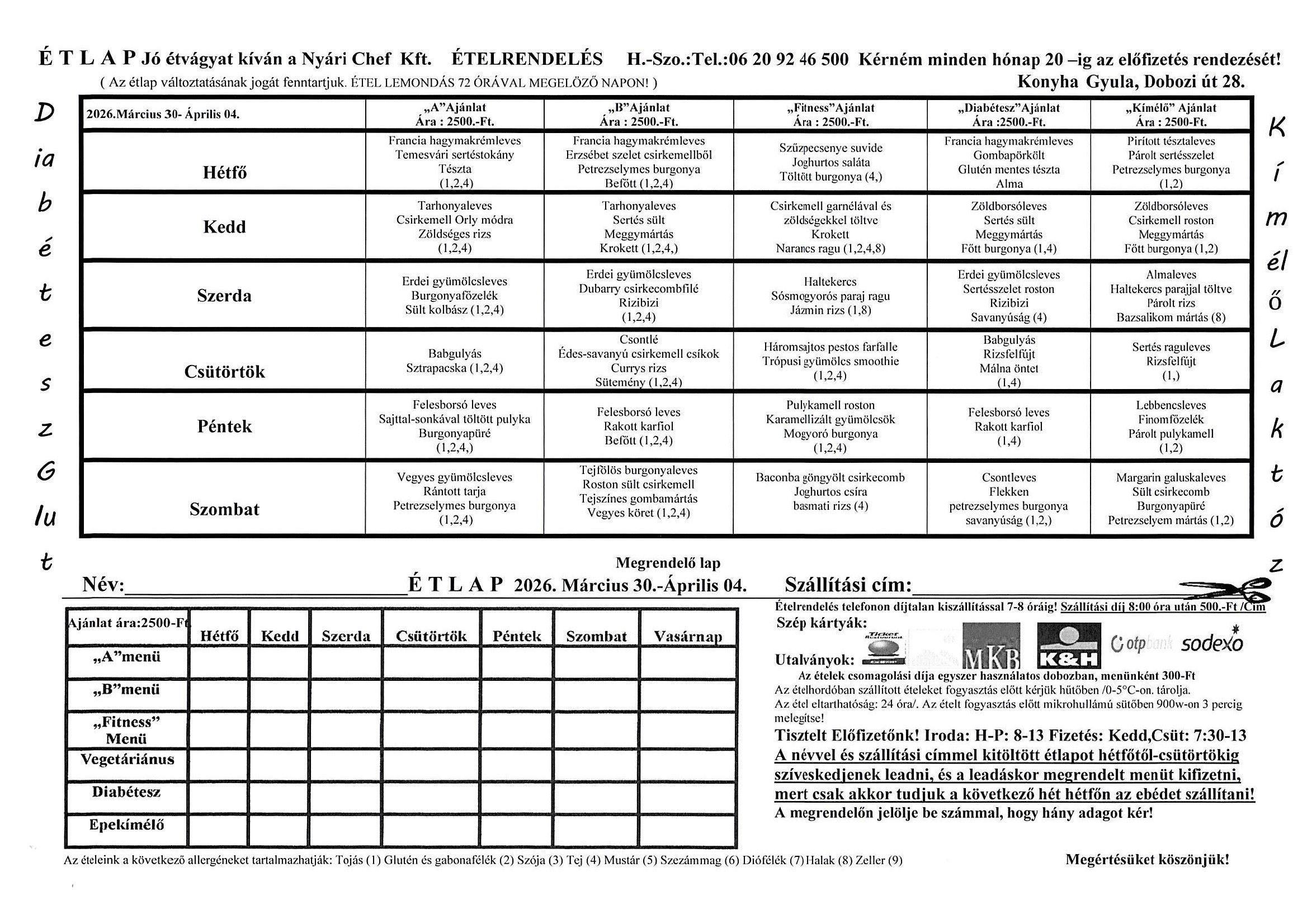 Adja le rendelését legkésőbb reggel 8.00-ig, és Békéscsabára is kiszállítjuk a választott menüjét. A kiszállítás díját a menü ára tartalmazza!