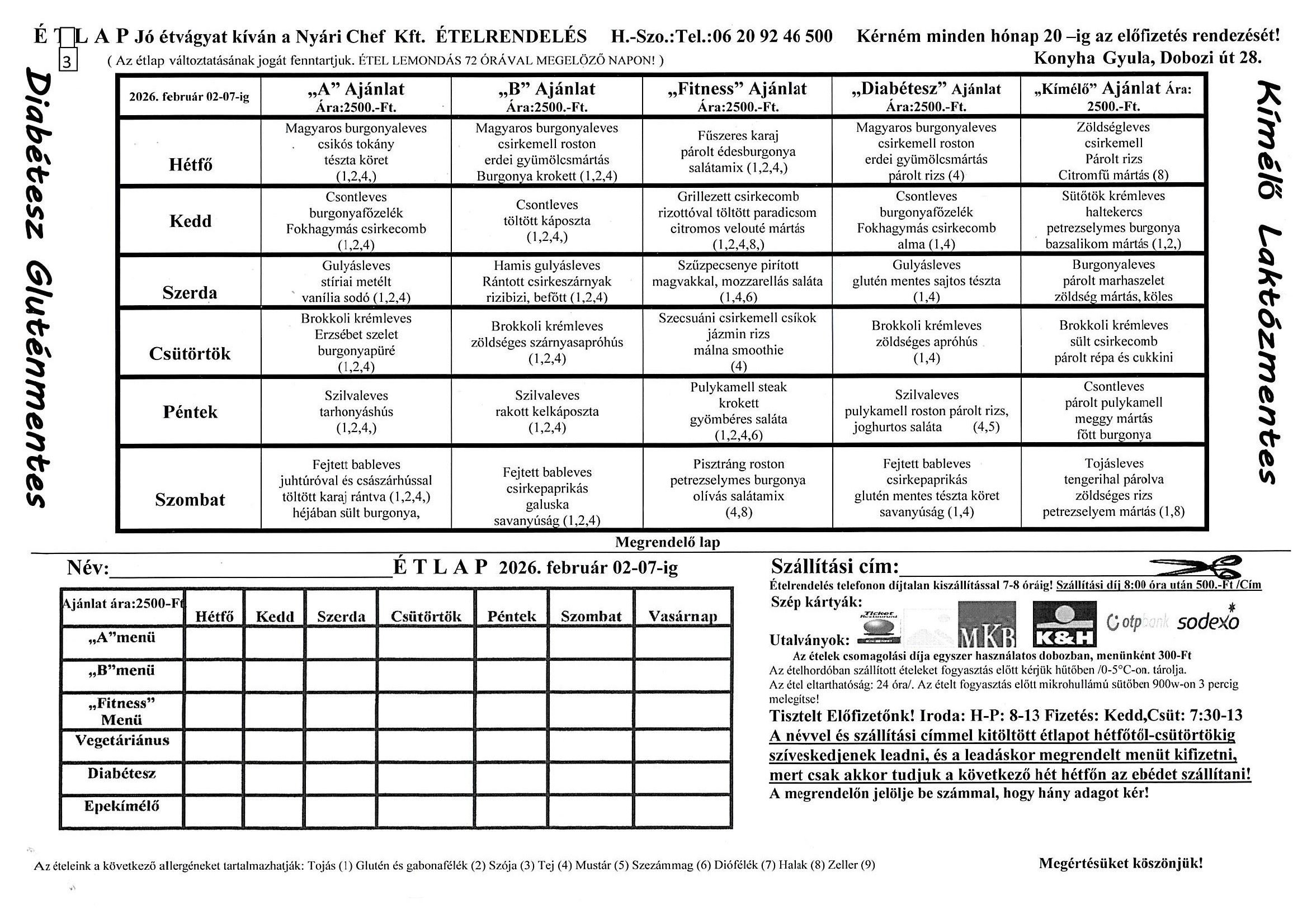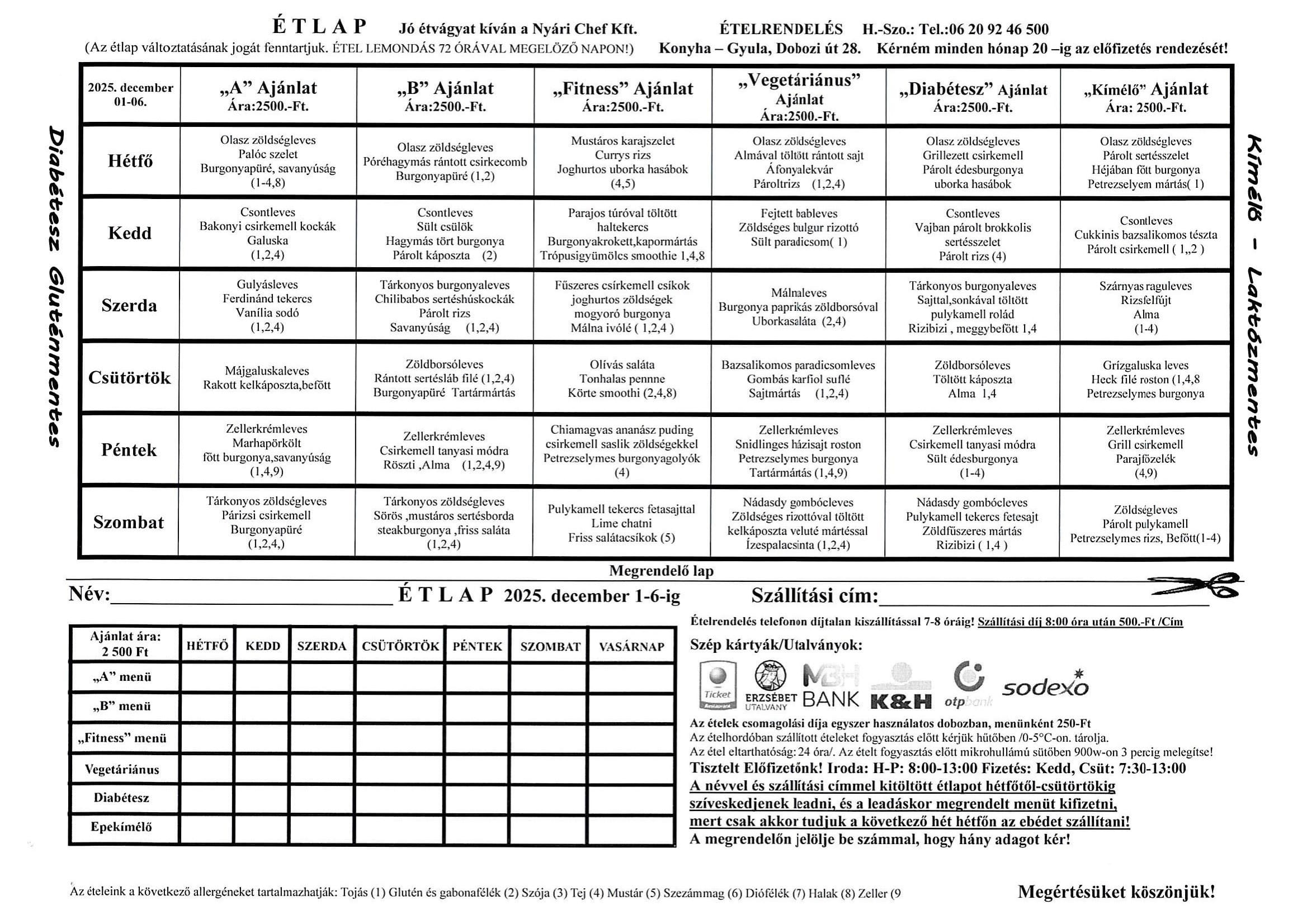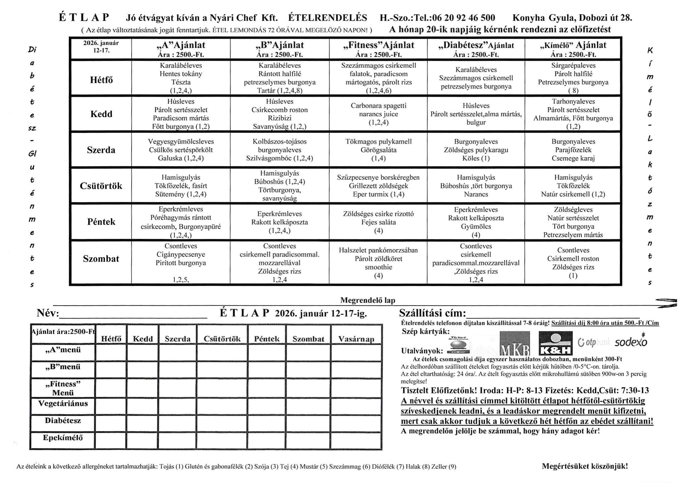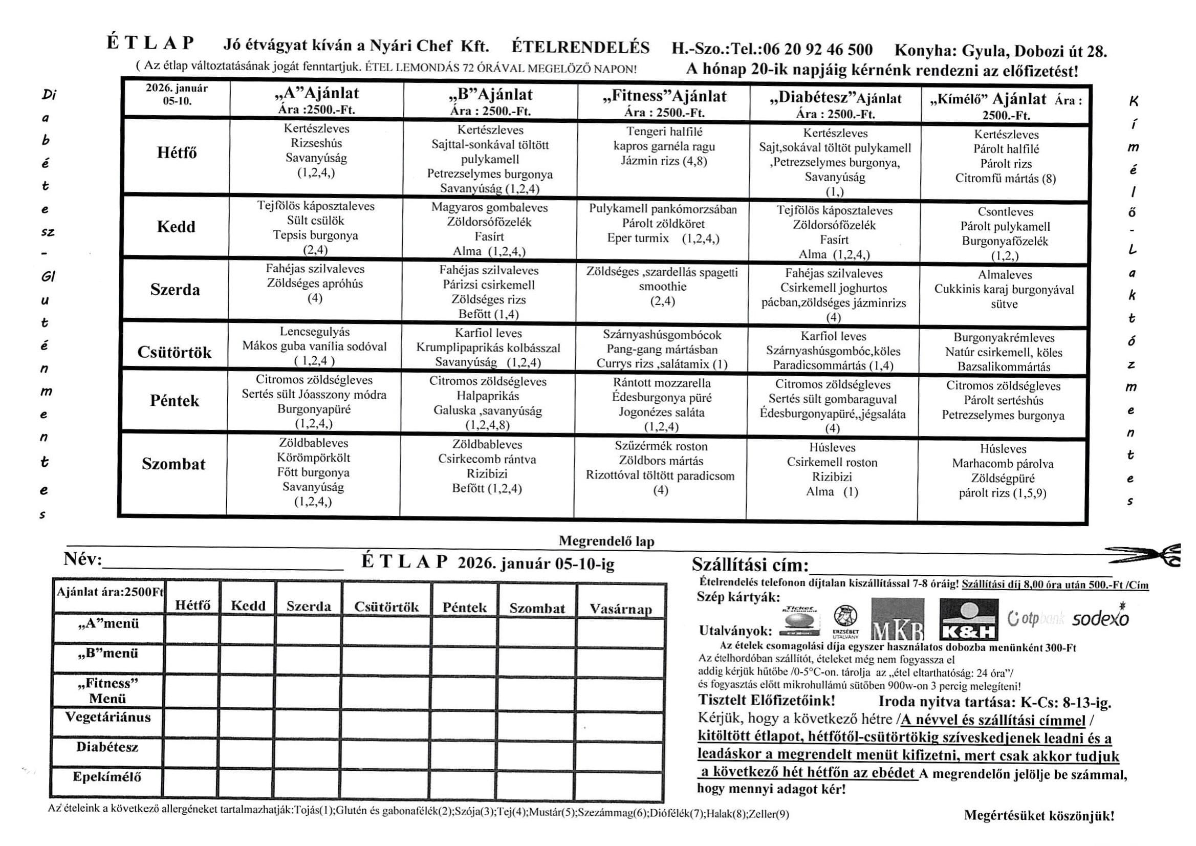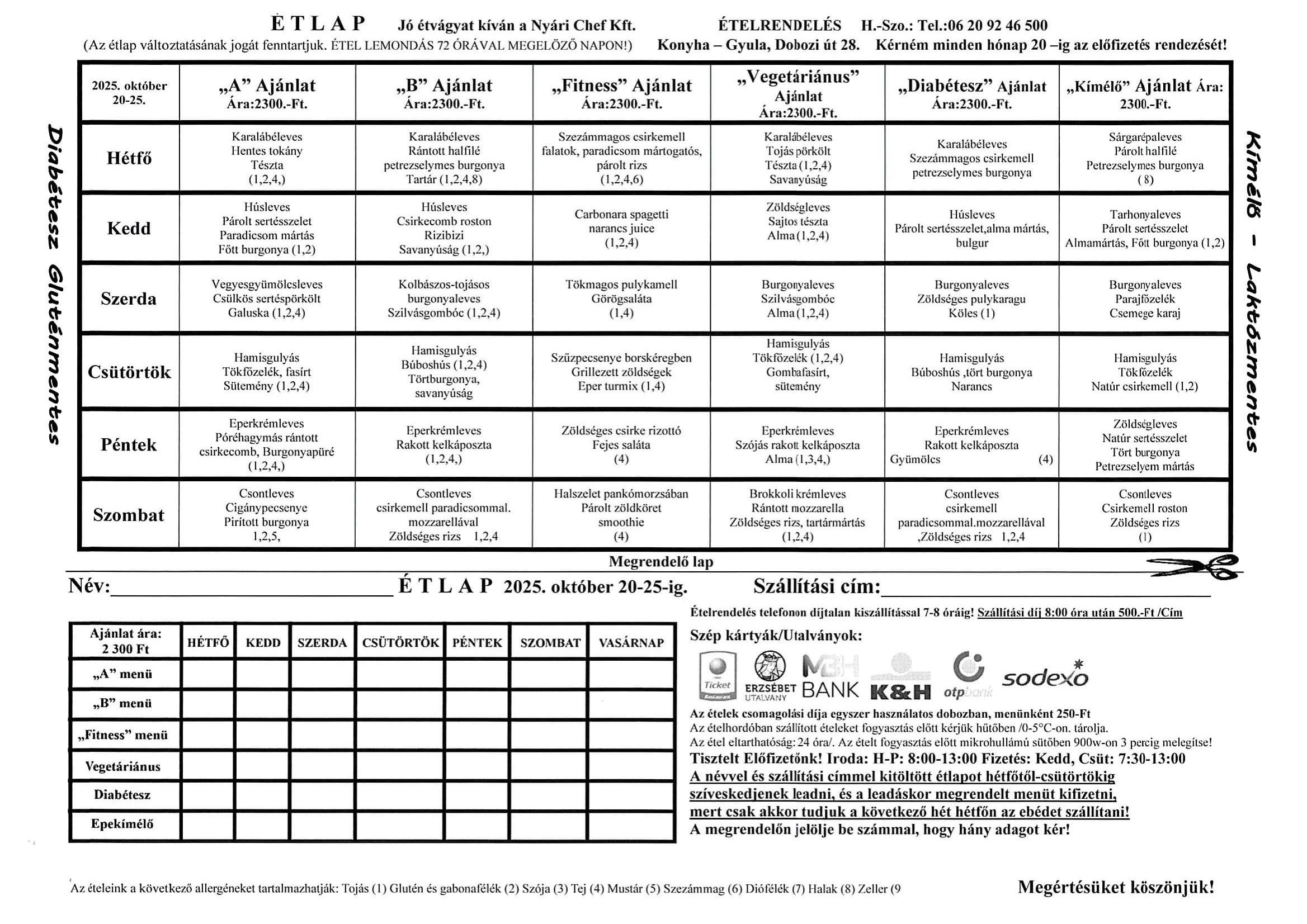 Adja le rendelését legkésőbb reggel 8.00-ig, és Békéscsabára is kiszállítjuk a választott menüjét. A kiszállítás díját a menü ára tartalmazza!