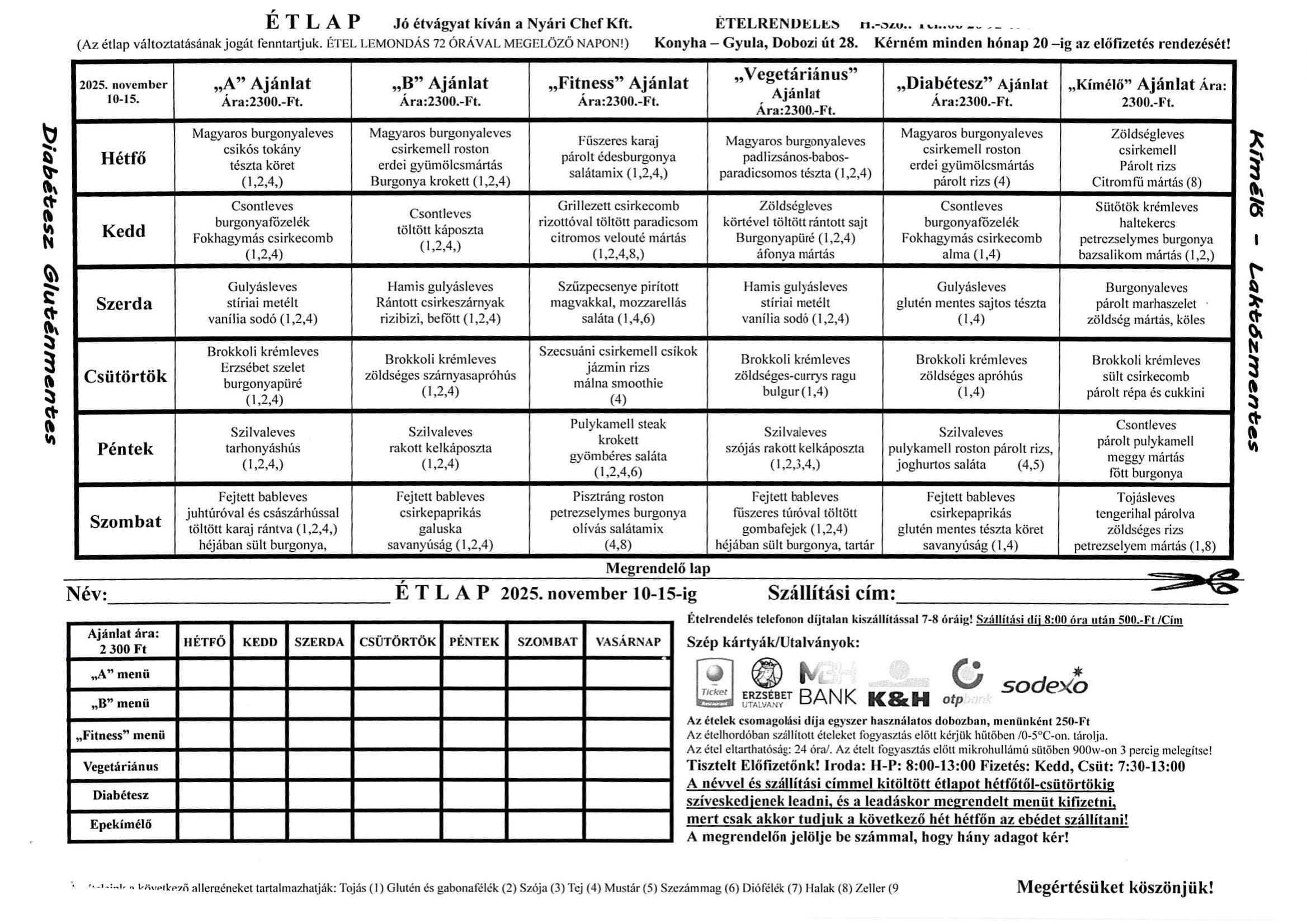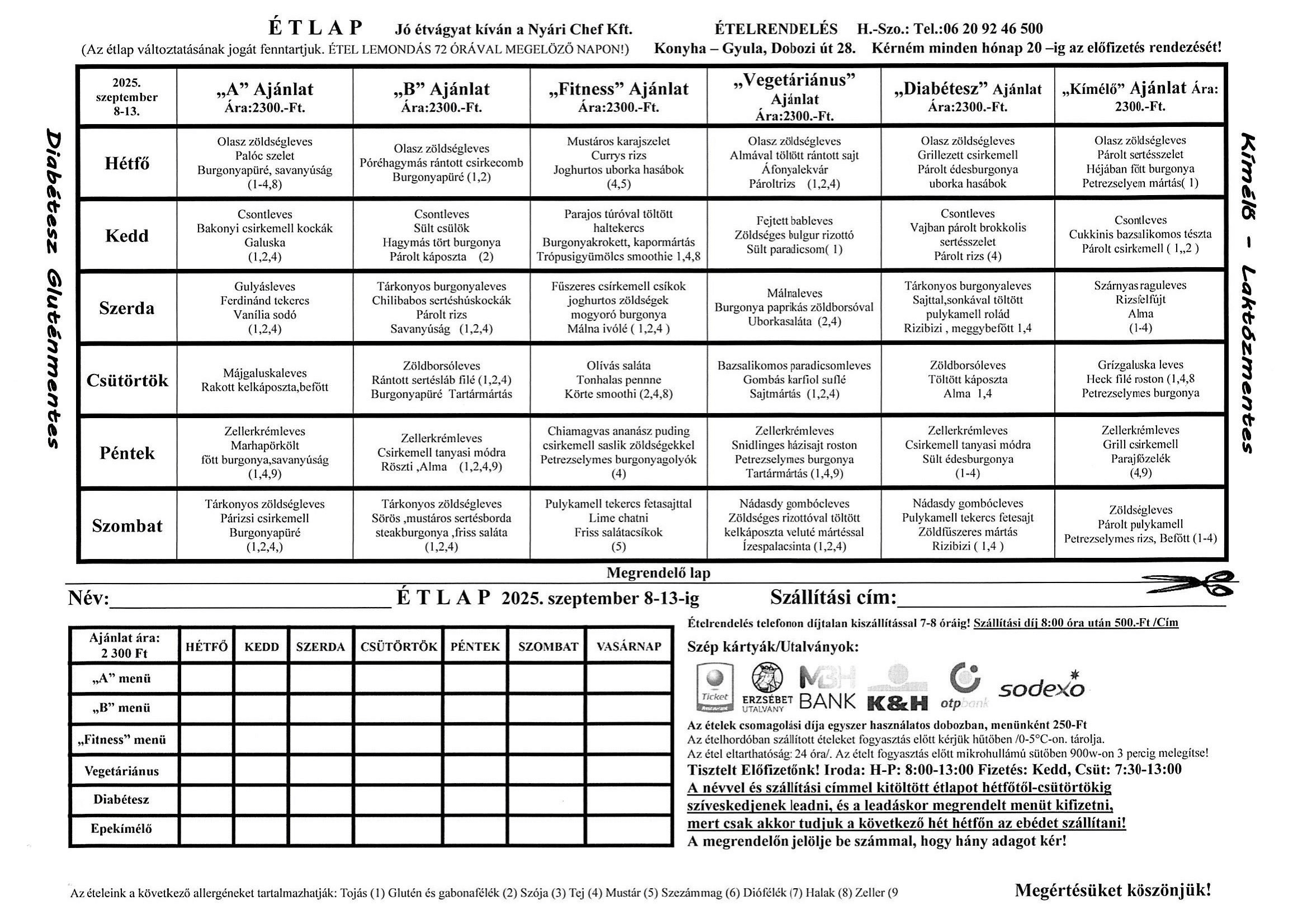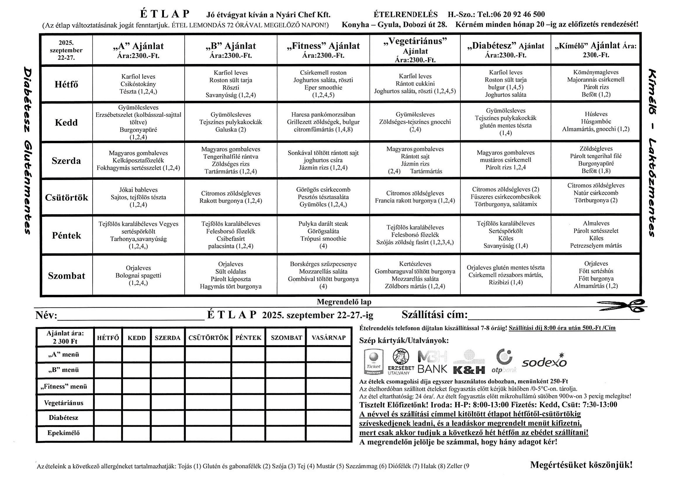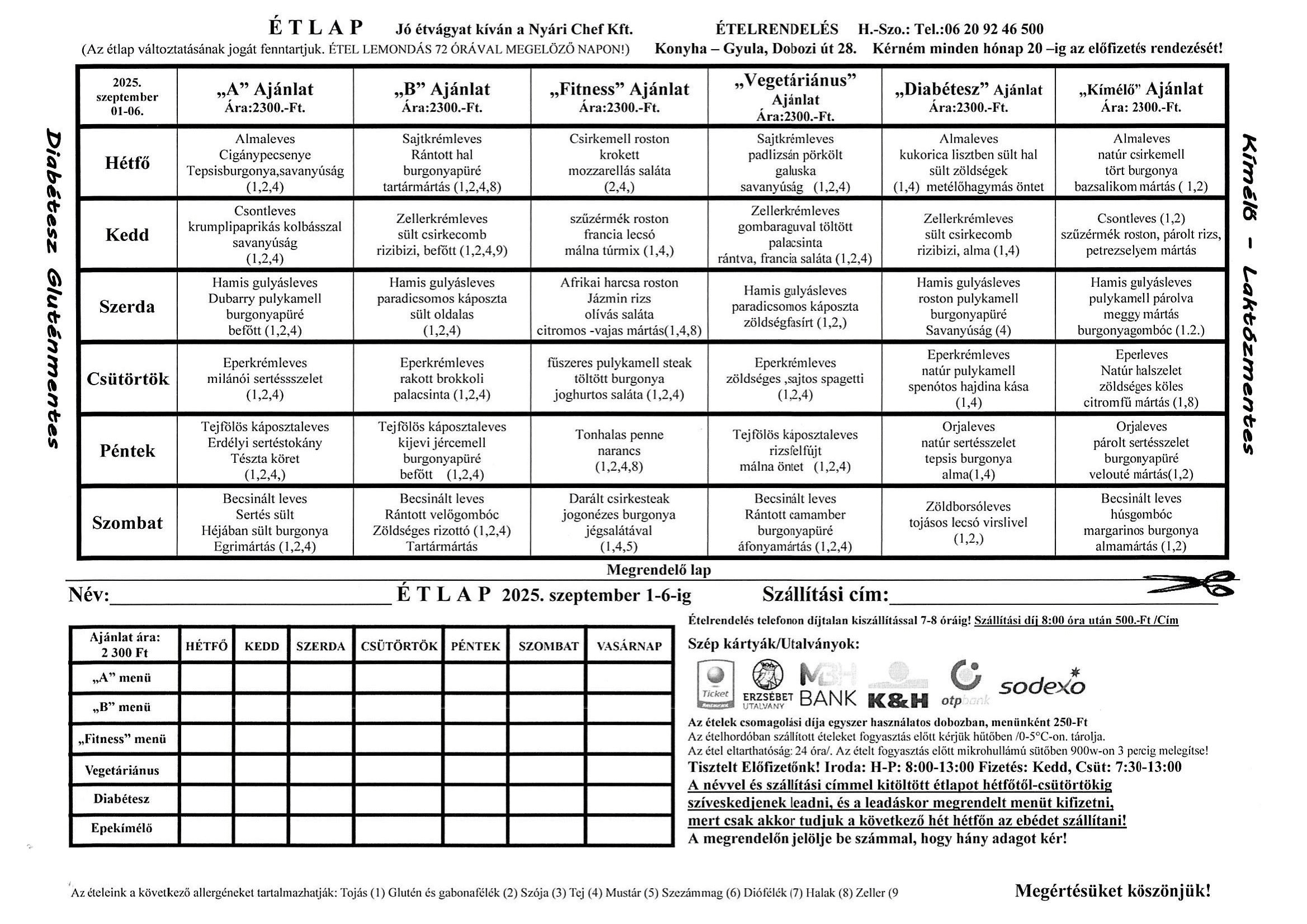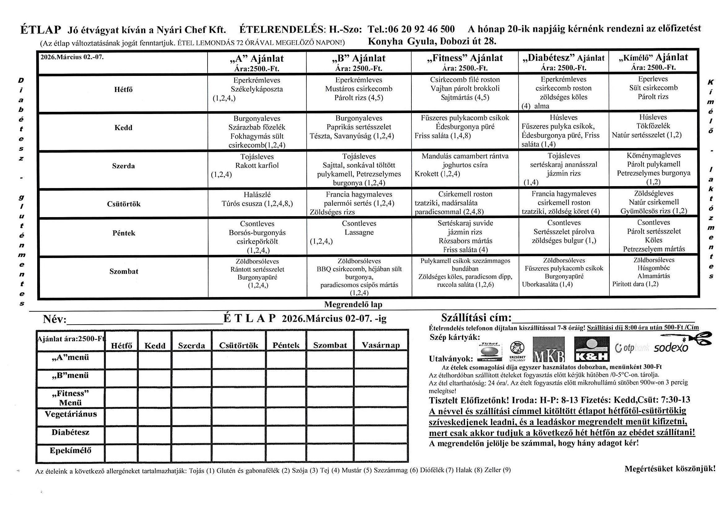 Adja le rendelését legkésőbb reggel 8.00-ig, és Békéscsabára is kiszállítjuk a választott menüjét. A kiszállítás díját a menü ára tartalmazza!