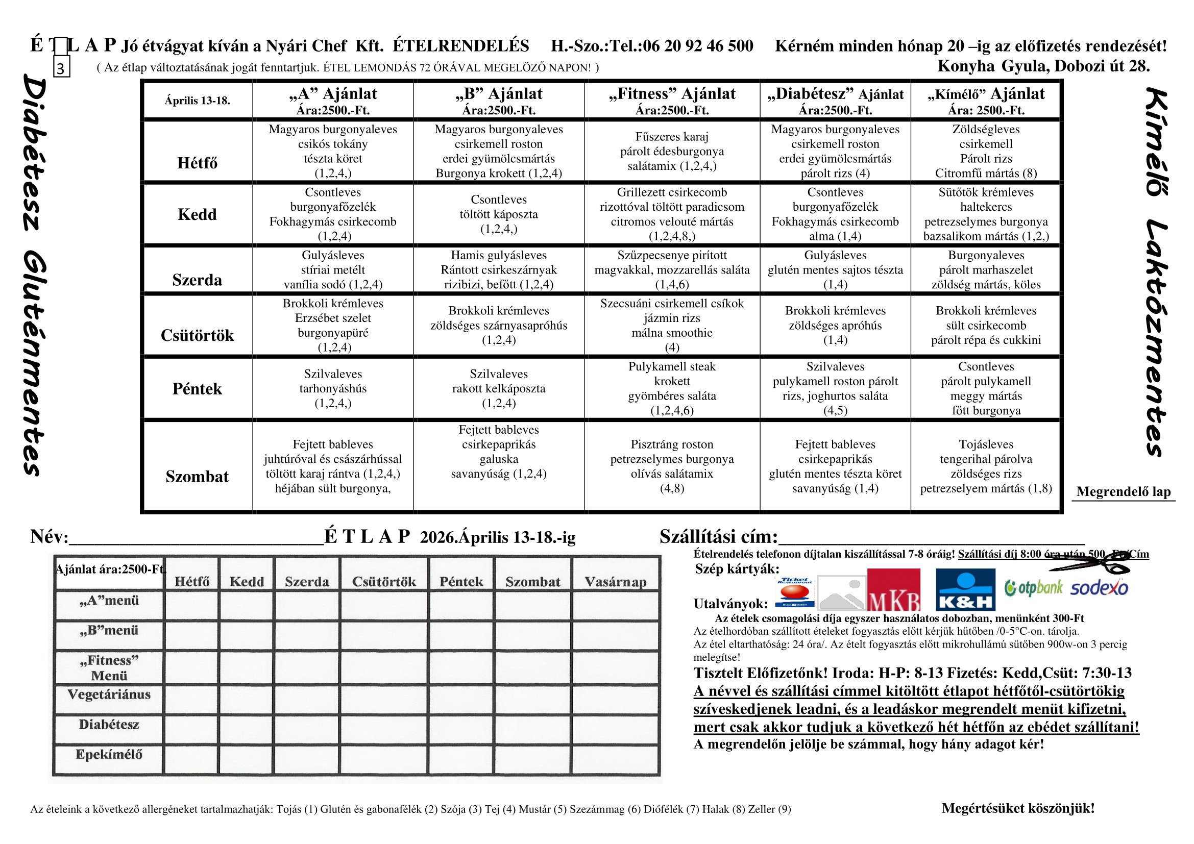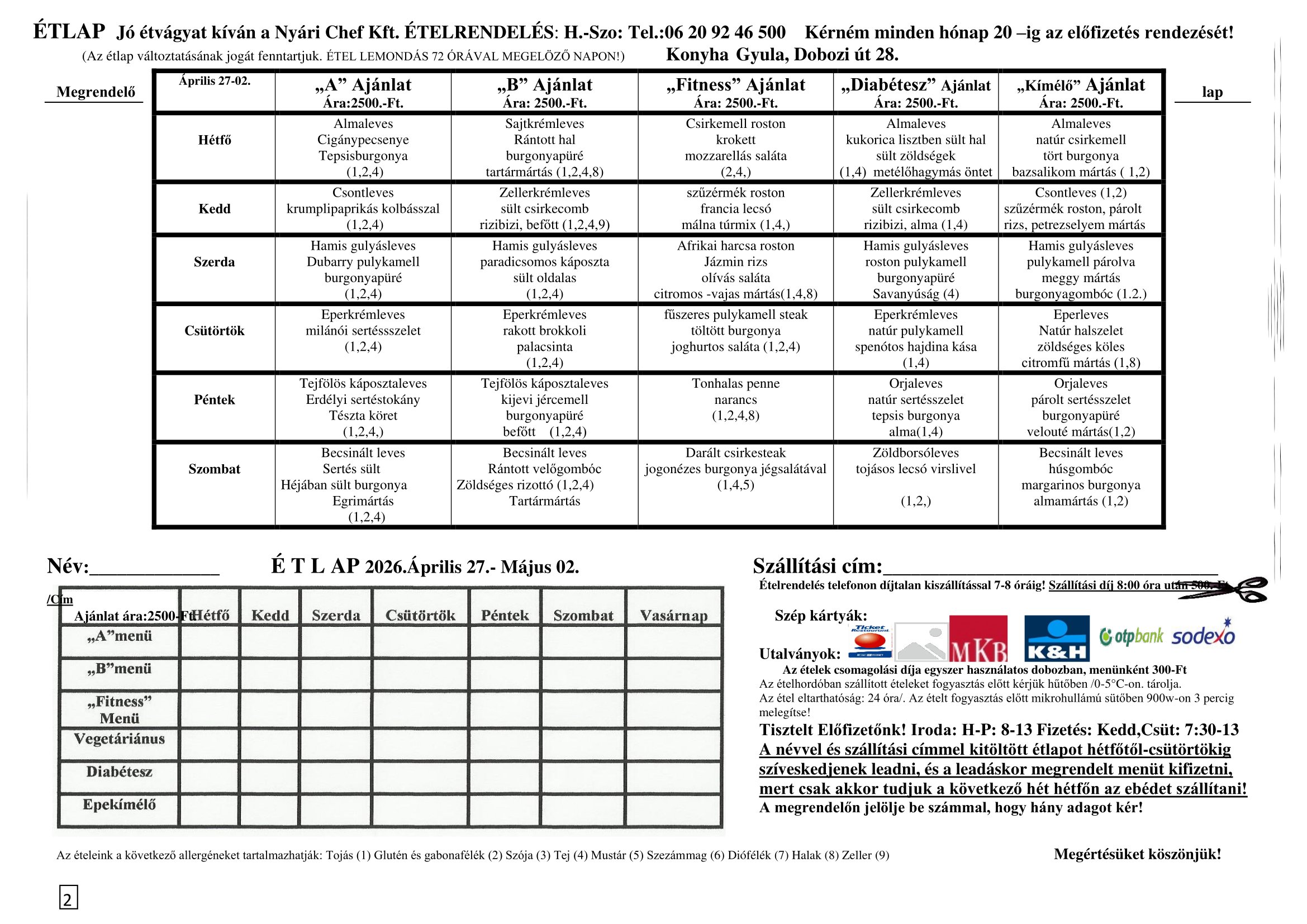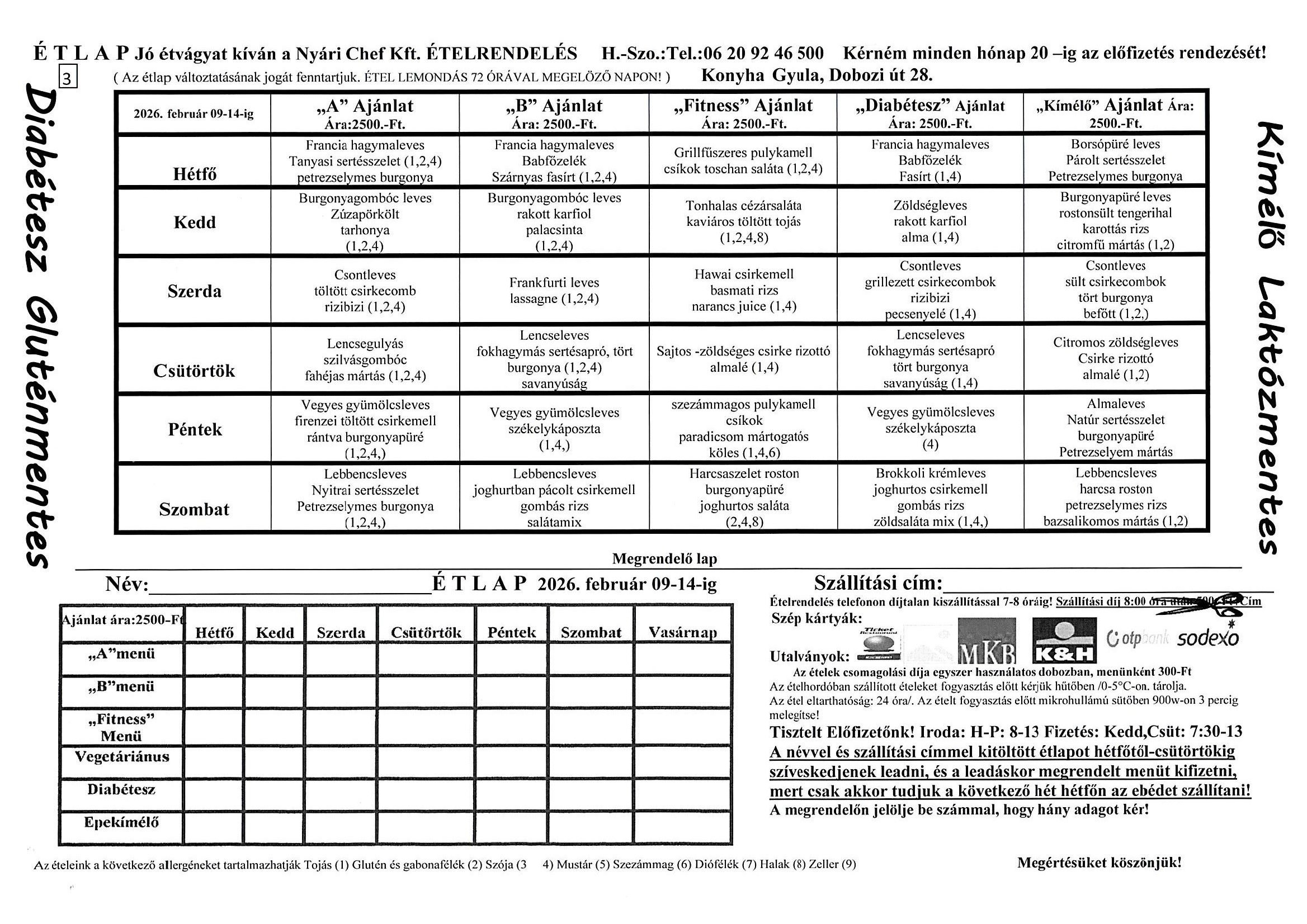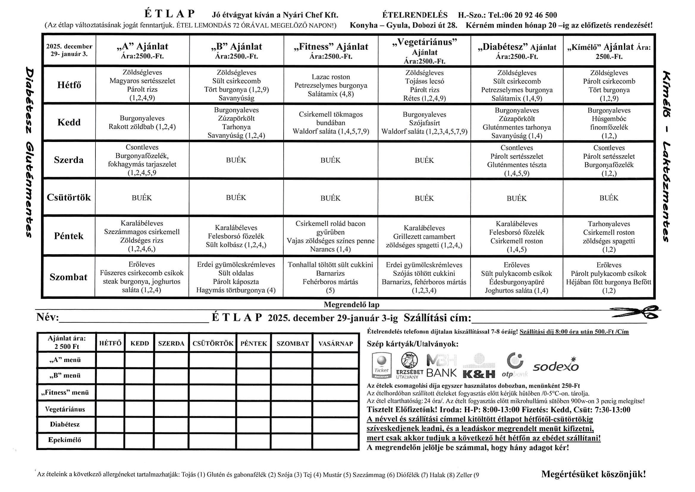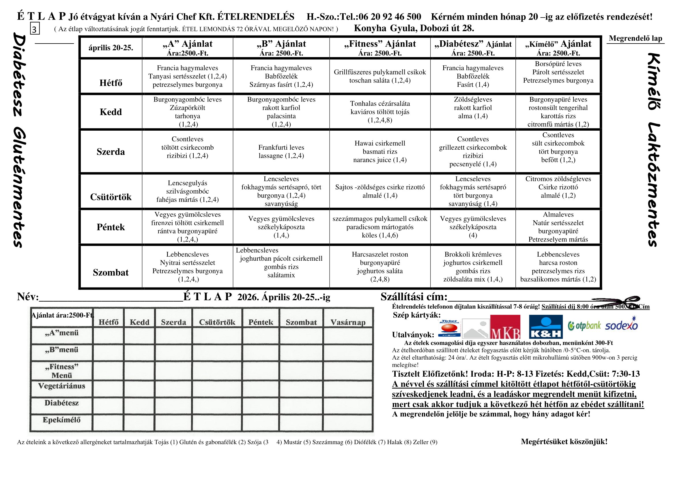 Adja le rendelését legkésőbb reggel 8.00-ig, és Békéscsabára is kiszállítjuk a választott menüjét. A kiszállítás díját a menü ára tartalmazza!