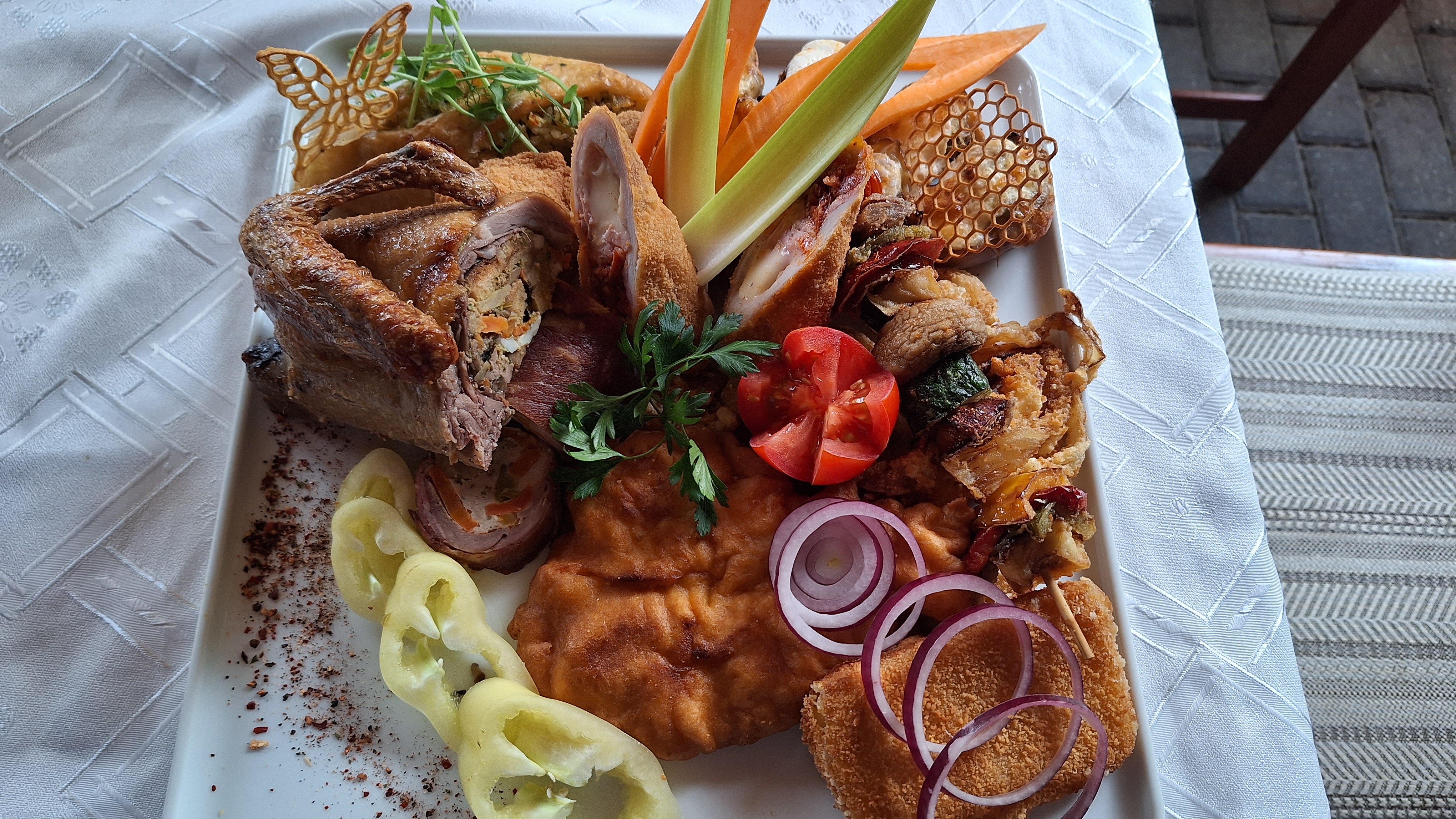 A tálon a felsorolt húsokból kb. 30-35 dkg hús és zöldség ételek plussz köret.