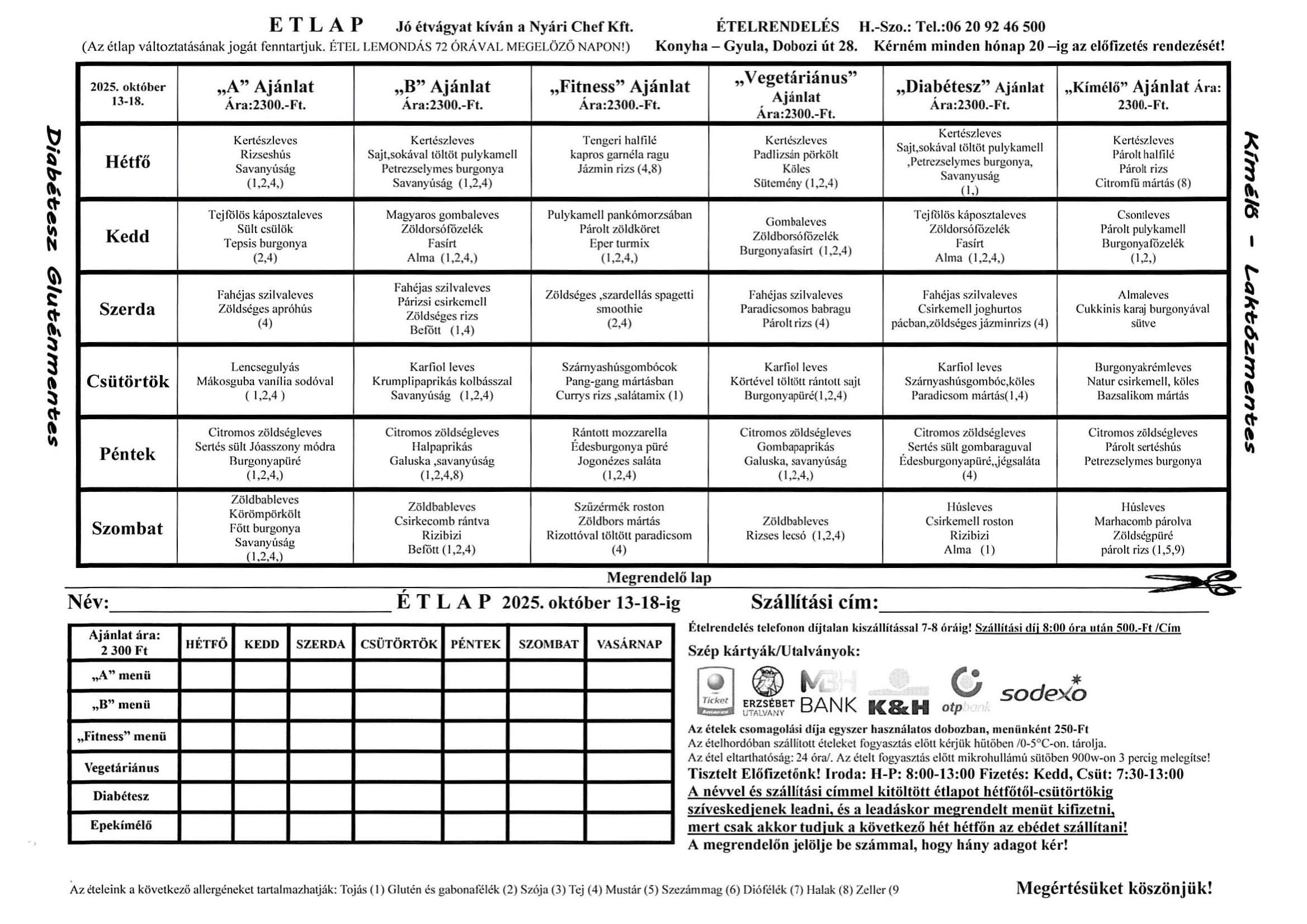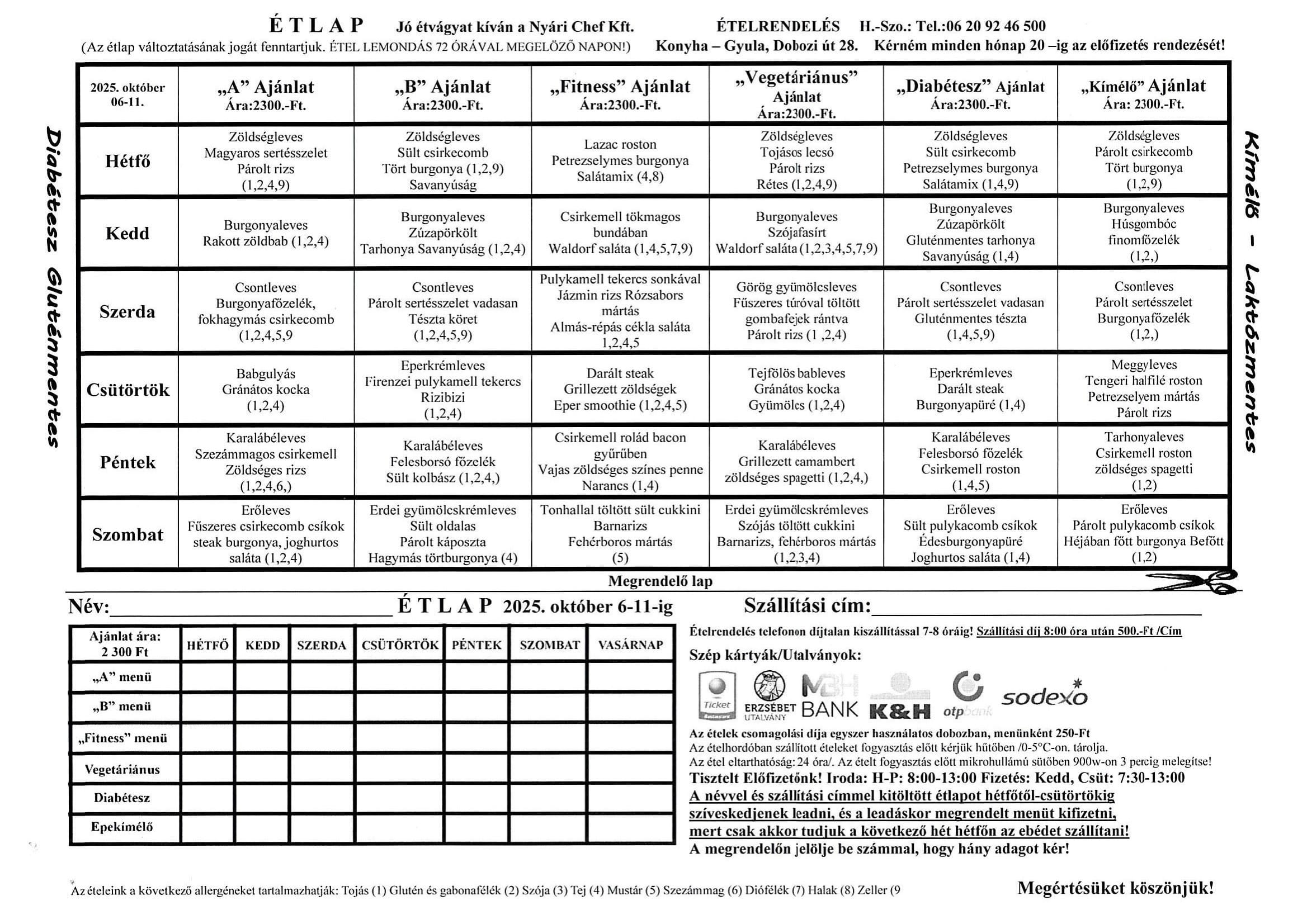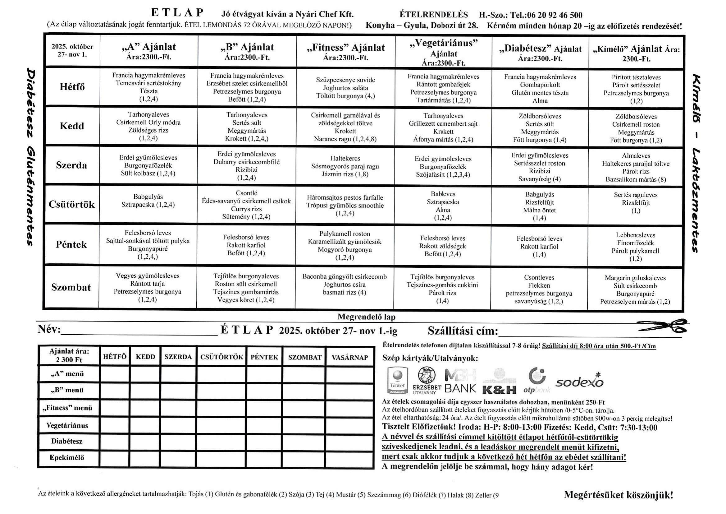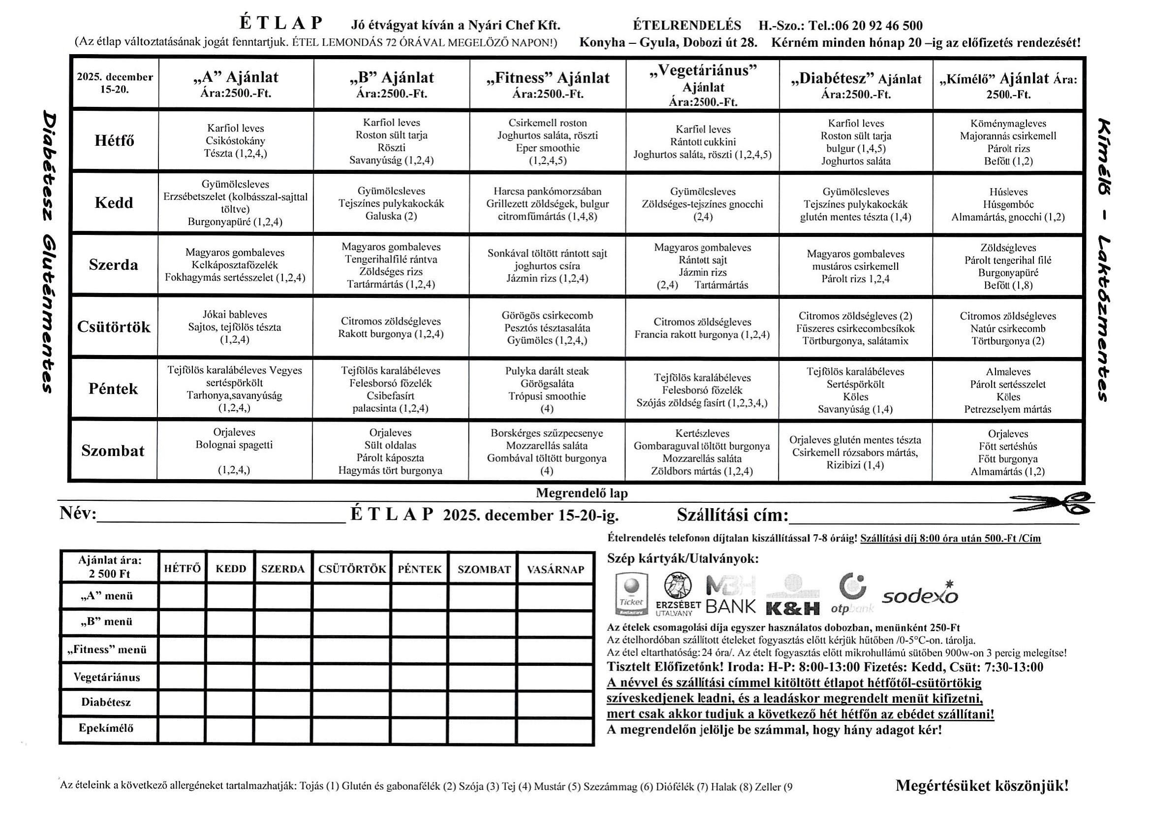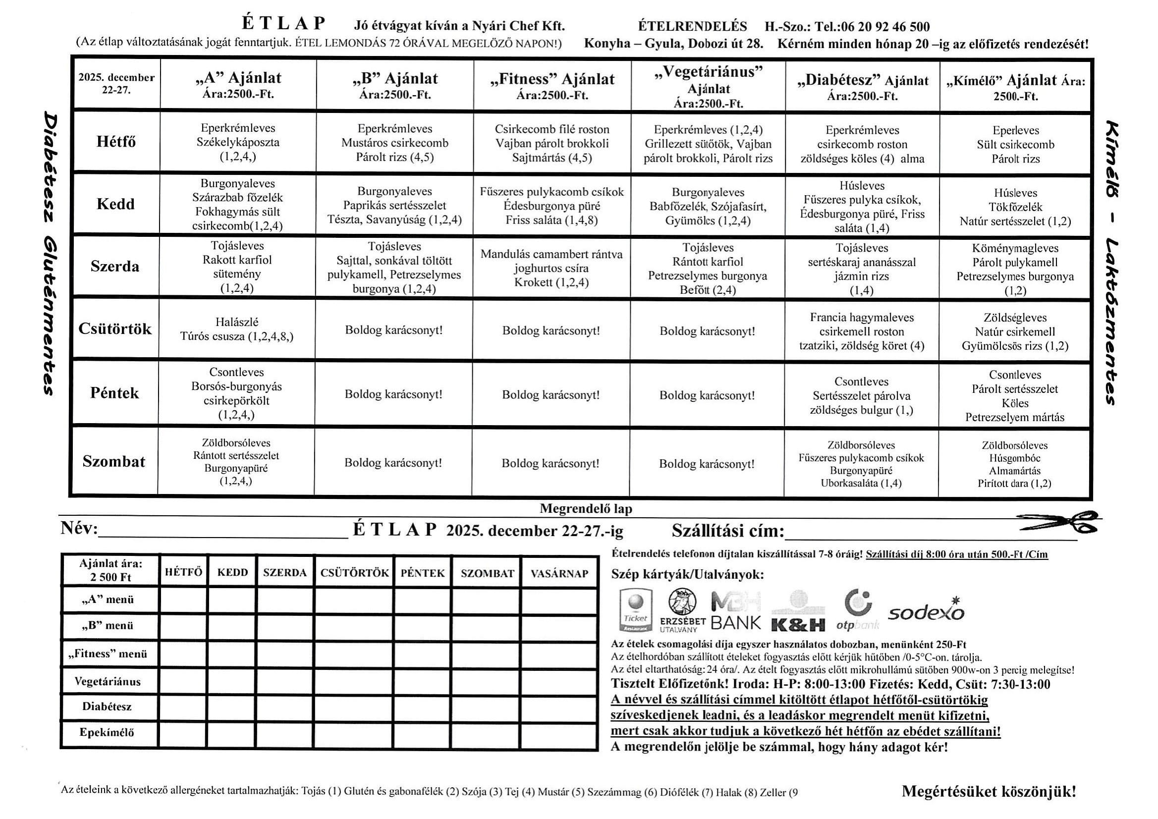 Adja le rendelését legkésőbb reggel 8.00-ig, és Békéscsabára is kiszállítjuk a választott menüjét. A kiszállítás díját a menü ára tartalmazza!